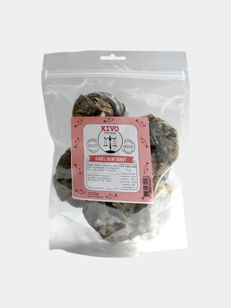Les friandises à mâcher pour chien au Poisson en forme de Donut de Kivo Natural Pet Food sont 100% naturelles et composées uniquement de morue.