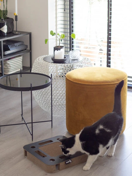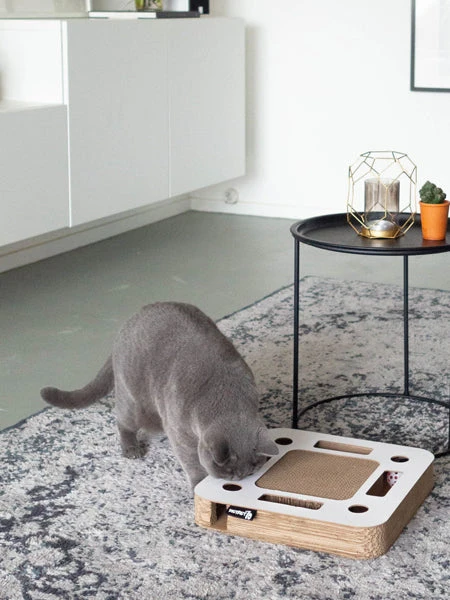 Le griffoir pour chat de district70 vous offre la parfaite aire de jeu pour votre chat. La surface en carton ondulĂ© est entourĂ©e d’une piste avec deux balles avec des cloches facilement accessibles par les cĂŽtĂ©s. Le mouvement tourbillonnant des boules stimulera votre chat. La partie griffoir permettra Ă votre chat de garder des griffes en bonne santĂ©. Interactif, il stimule lâactivitĂ© mentale et physique. GrĂące Ă ce jouet, votre maison devient le territoire de chasse de votre chat. Il permettra de l’occuper et de le stimuler pour lutter contre lâennui, principale cause de dĂ©pression, d’anxiĂ©tĂ©, d’agressivitĂ©, de destructions, etc…