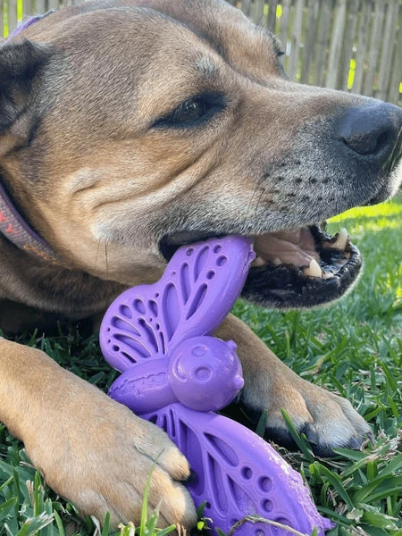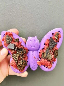 Votre chien s’ennuie? Boostez ses journées avec le jouet à mâcher en forme de Papillon de SodaPup. Il est idéal pour les chiens qui adorent mâchouiller ou lécher. Le jouet est conçu au USA à partir de Nylon non toxique, ultra-résistant et pouvant être mordu ou léché sans danger. Ce jouet d’enrichissement est parfait pour occuper et stimuler votre chien. Vous pouvez étaler sur la surface toutes sorte de préparation : beurre de cacahuète, pâtée, yahourt… Il contribue à lutter contre l’ennui et l’anxiété en occupant la mâchoire de votre Poilu. Pour encore plus de fun, vous pouvez passer le jouet SodaPup au congélateur (entre 4 et 5 heures), c’est idéal durant l’été pour les rafraichir.