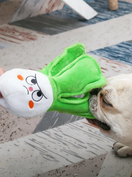 Le jouet de fouille en peluche pour chien et chiot – Feisty Veggie Bok-choy 🥬 de HugSmart offre une petite fente pour cacher des friandises pour encore plus de fun pendant le jeu. La peluche renferme un Squeaker qui fait Pouic Pouic Pouic pour stimuler au jeu.