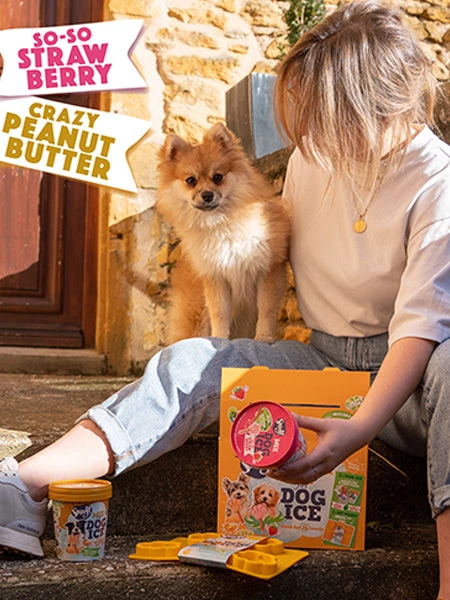 Le kit de prĂ©paration de glaces pour chien de Smoofl inclut 2 pots de prĂ©paration (Fraise et Beurre de cacahuĂšte), un moule taille S ainsi que 20 bĂątonnets comestibles. Il permet de faire jusqu’Ă Â 20 glaces. C’est une friandise idĂ©ale en Ă©té et lors des Ă©pisodes de canicule pour rafraĂźchir votre Poilu avec des glaces faites maison. TrĂšs faible en lactose en graisses et en sucres pour une meilleure digestion.