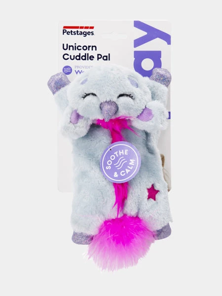 La bouillotte pour chat ou chaton Cuddle Pal en forme de Licorne de Pet Stages est idĂ©ale pour les chats souffrant d’anxiĂ©tĂ© ou de stress. Votre chat pourra cĂąliner ce doudou chauffant pour rĂ©duire son stress et l’aider Ă dormir.