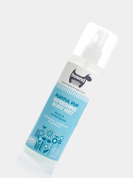 Le spray parfumant et hydratant pour chiot et chien sensible de Hownd est spécifiquement formulé pour les chiots et les chiens ayant la peau sensible.