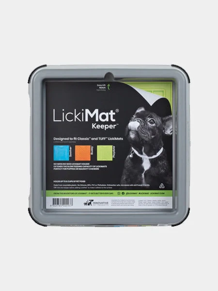 Le Support pour tapis de lĂ©chage Indoor Keeper de LickiMat est l’accessoire parfait si votre Poilu a tendance Ă mordiller ses tapis de lĂ©chage ! En plus de faire office de support pour les tapis de lĂ©chage, il permet de tranformer un simple tapis de lĂ©chage en gamelle anti-glouton. Le Indoor Keeper de LickiMat est fabriquĂ© Ă partir de matĂ©riaux non toxique (aucun transfert vers la nourriture). Il passe au lave-vaisselle pour un entretien facile. Il est compatible avec l’ensemble des Lickimat Classic et Tuff mais aussi avec les tapis des autre marques dont les dimensions sont de 20 x 20 cm (